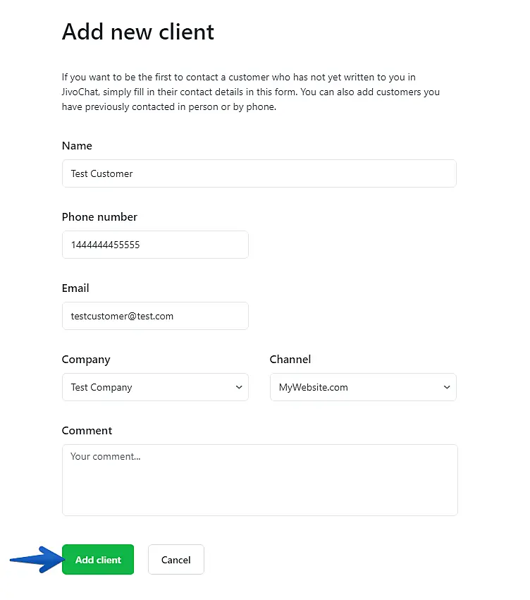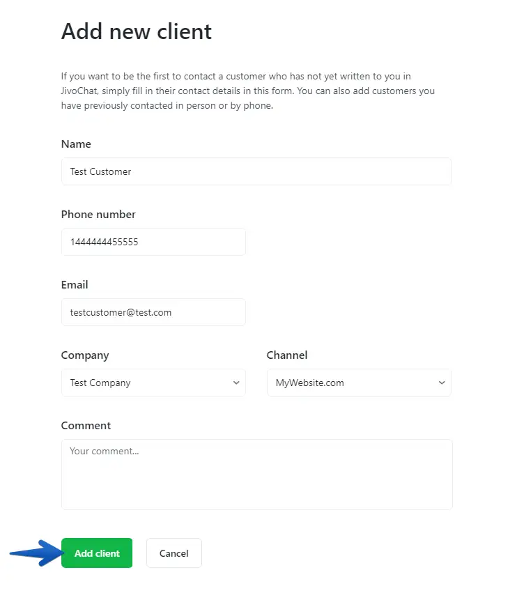 2. Mevcut müşteri verilerini doldurun ve Müşteri ekle seçeneğini tıklayın.