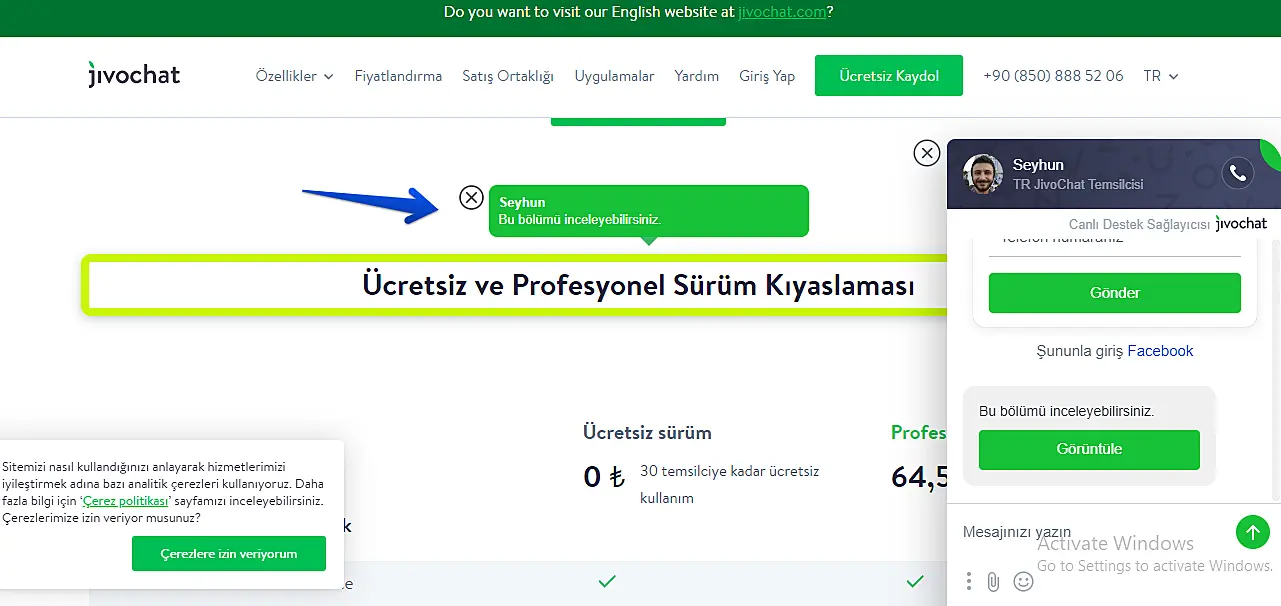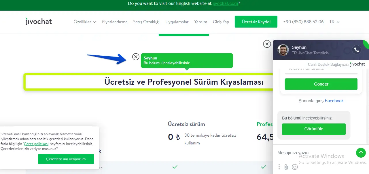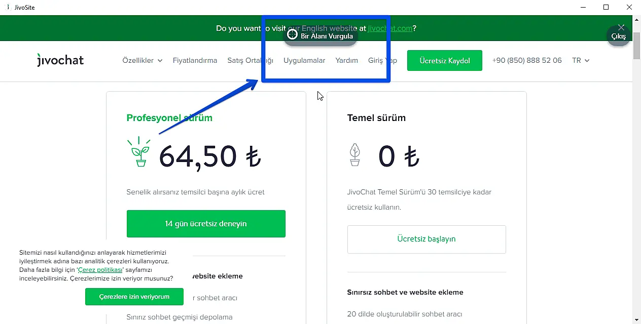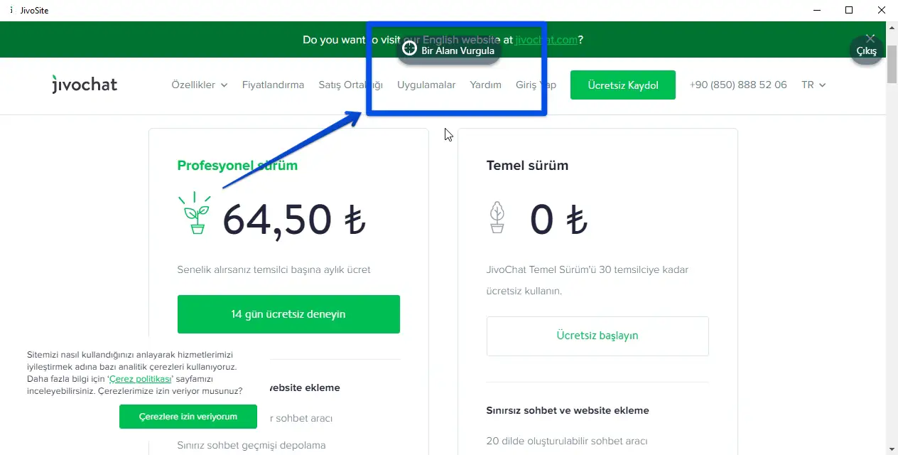 Temsilci uygulamamızda çok kullanışlı bir araç sunuyoruz. Web sitenizin belirli bir bölümünü vurgulamak isterseniz işaretçi size yardımcı olabilir. Bu durumda müşteri, belirttiğiniz web sitesinin bölümünü görüntülemek için bir mesaj alacaktır. Bu nasıl çalışır: