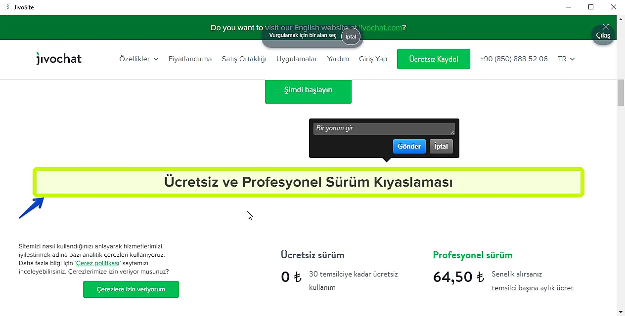 Vurgulamak istediğiniz alanı seçin ve bir yorum ekleyin: