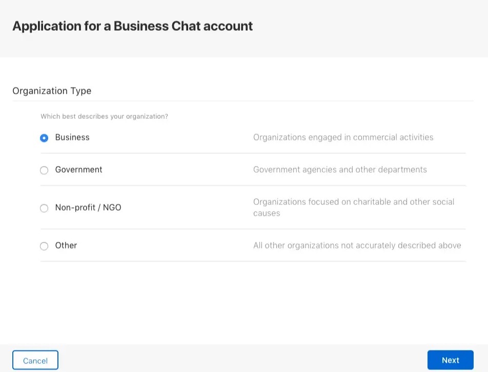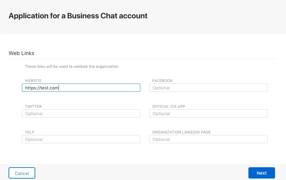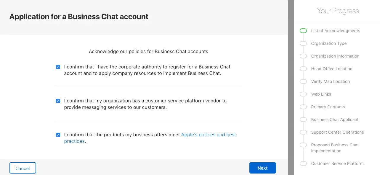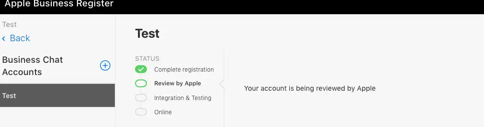 Sonra bir Apple Business Chat hesabı oluşturmaya devam edin.