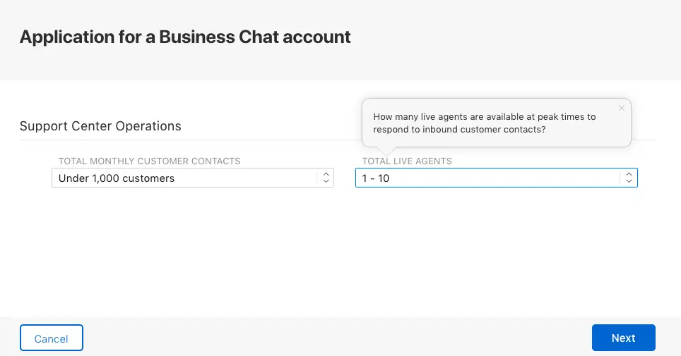 Daha sonra, Business Chat aracılığıyla kaç sohbet almayı beklediğinizi belirtmeniz ve ayrıca temsilcilerin çevrimiçi yanıt verip vermeyeceğini belirtmeniz gerekir.