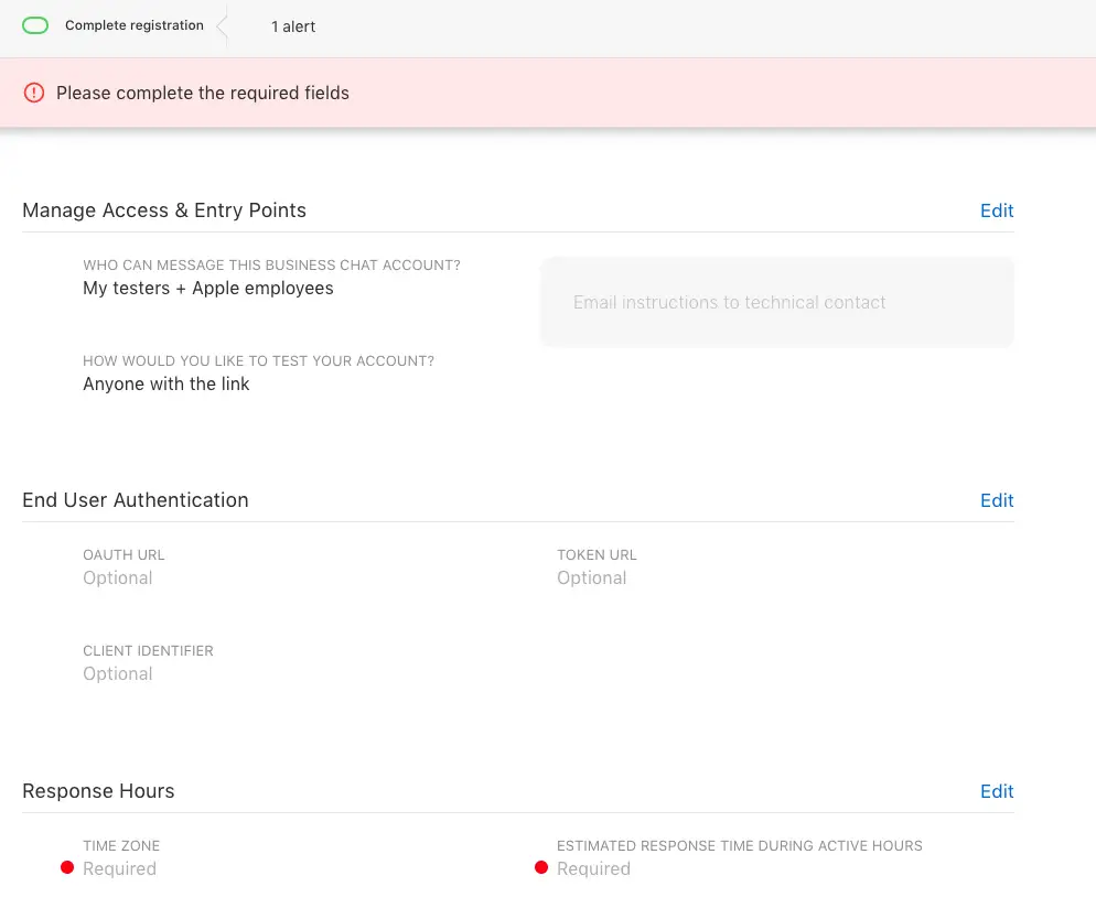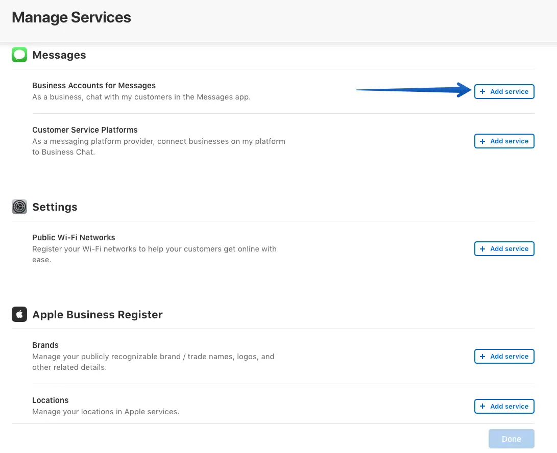 Apple Business Chat'e bağlanmak için, Apple Business Register'da bir hesap oluşturmanız gerekir.