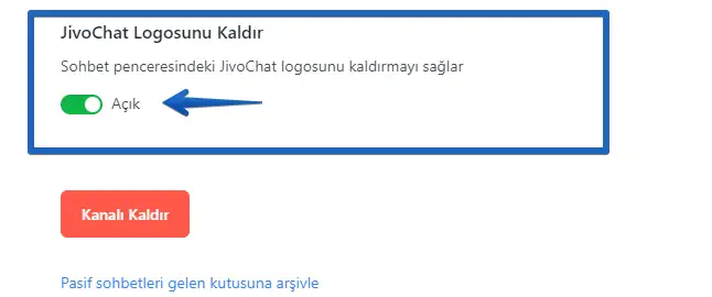 Sohbet penceresinden JivoChat logosunu kaldırma