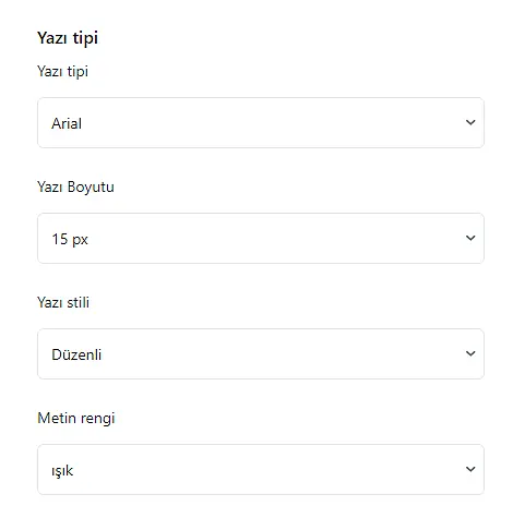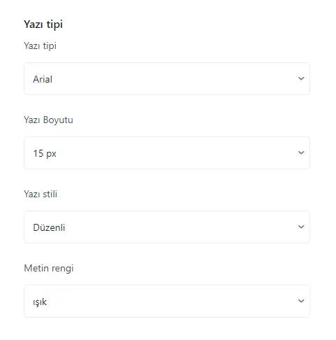 Bu bölümde yazı tipini, boyutunu, stilini ve metin rengini belirleyebilirsiniz.