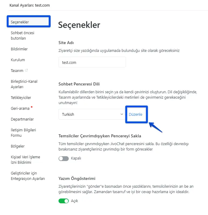 Temsilci uygulamasını veya web versiyonunu açın ve Yönet -> Kanallar>> İlgili kanal ayarlarına gelin.