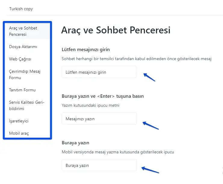 Sohbet penceresindeki varsayılan bütün metinleri özelleştirme