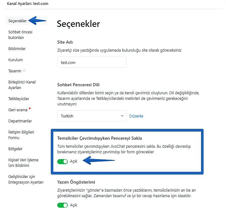 "Seçenekler"e gidin ve Temsilciler çevrimdışıyken sohbet penceresini gizle seçeneğini aktifleştirin: