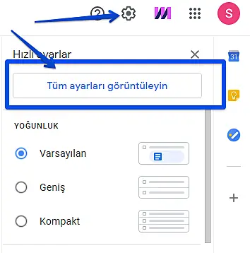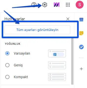 1.Gmail hesabınıza erişin, ayarlar>>tüm ayarları görüntüleyin seçeneğine gidin.