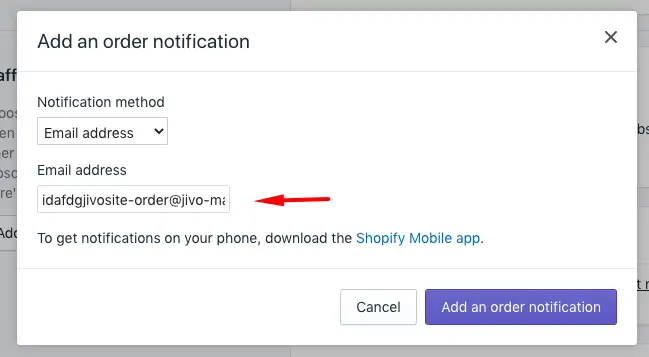 7. JivoChat'dan aldığınız yönlendirme mail adresini "Email address"alanına girin.