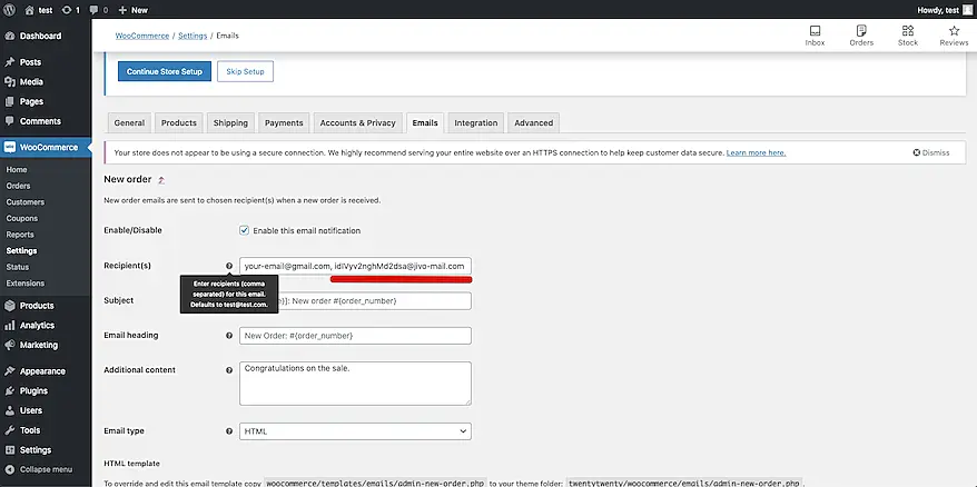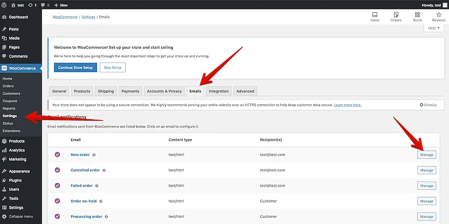 5. Kontrol panelinizdeki "WooCommerce" bölümünde "Ayarlar" ı açın ve "Yeni Sipariş" ayarlarına ilerleyin.