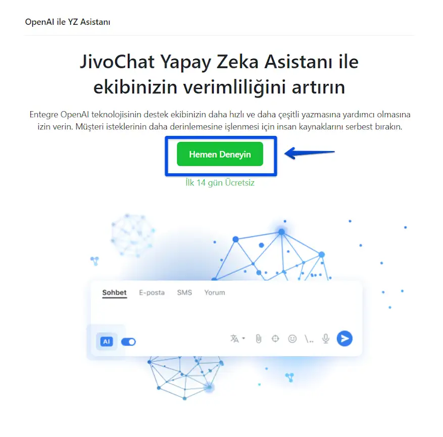 "Yönet" -> "Modüller" -> "Jivo Modülleri" -> "OpenAI YZ Asistanı" adımlarını izleyin,