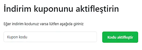 Şimdi indirim kuponu kodunuzu yazın ve "Kodu aktifleştir"e basın.