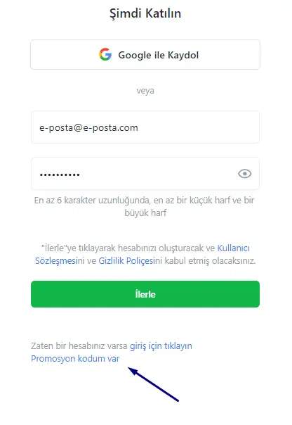 Şimdi promosyon kodunuzu yazın ve "İlerle" düğmesine basın.