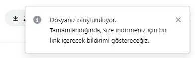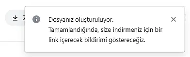 - Dosya oluşturma işlemi tamamlandığında size gönderilecek bildirimde "İndir" butonuna tıklayın.