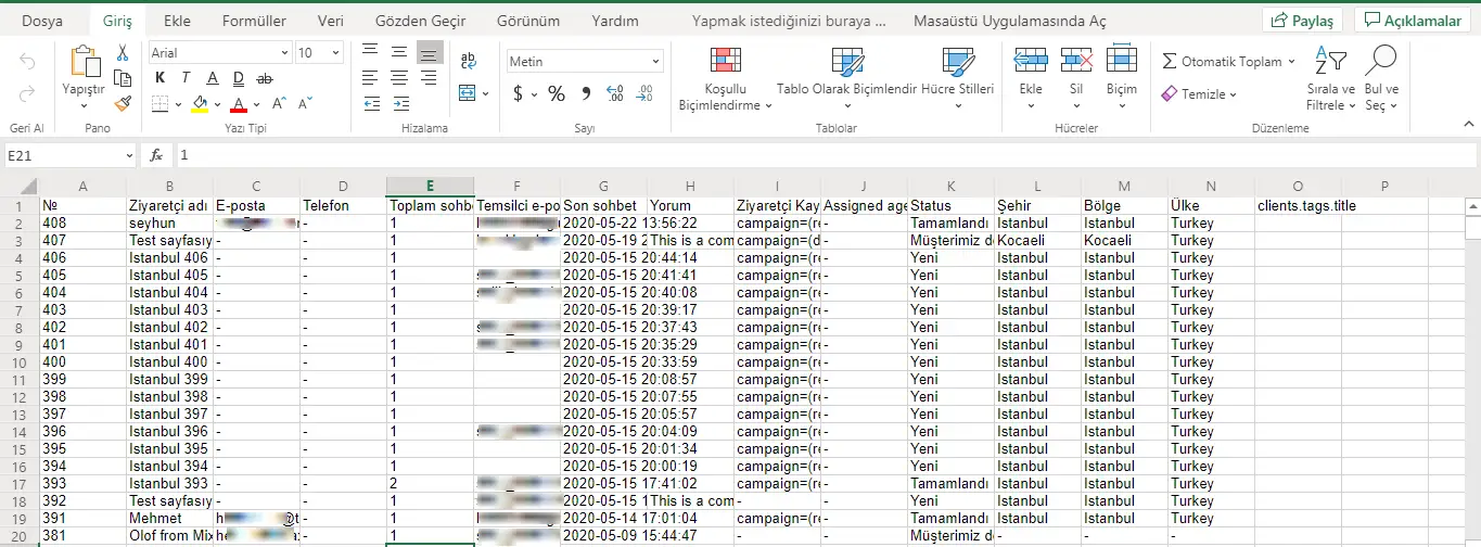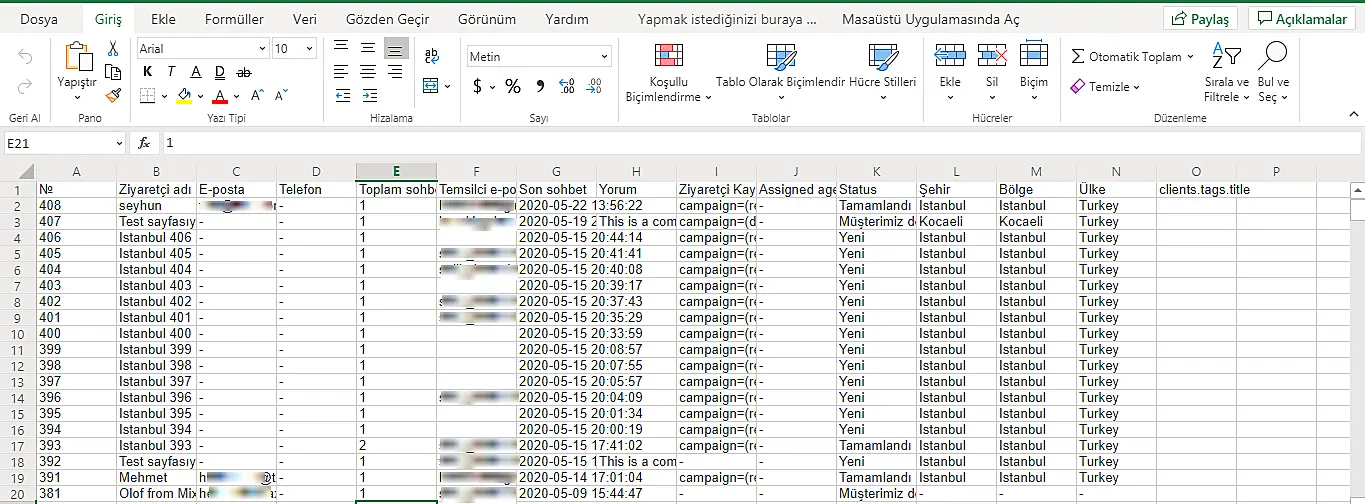 Ziyaretçilerin formlara girdikleri tüm iletişim bilgilerini dışa aktarabilirsiniz.