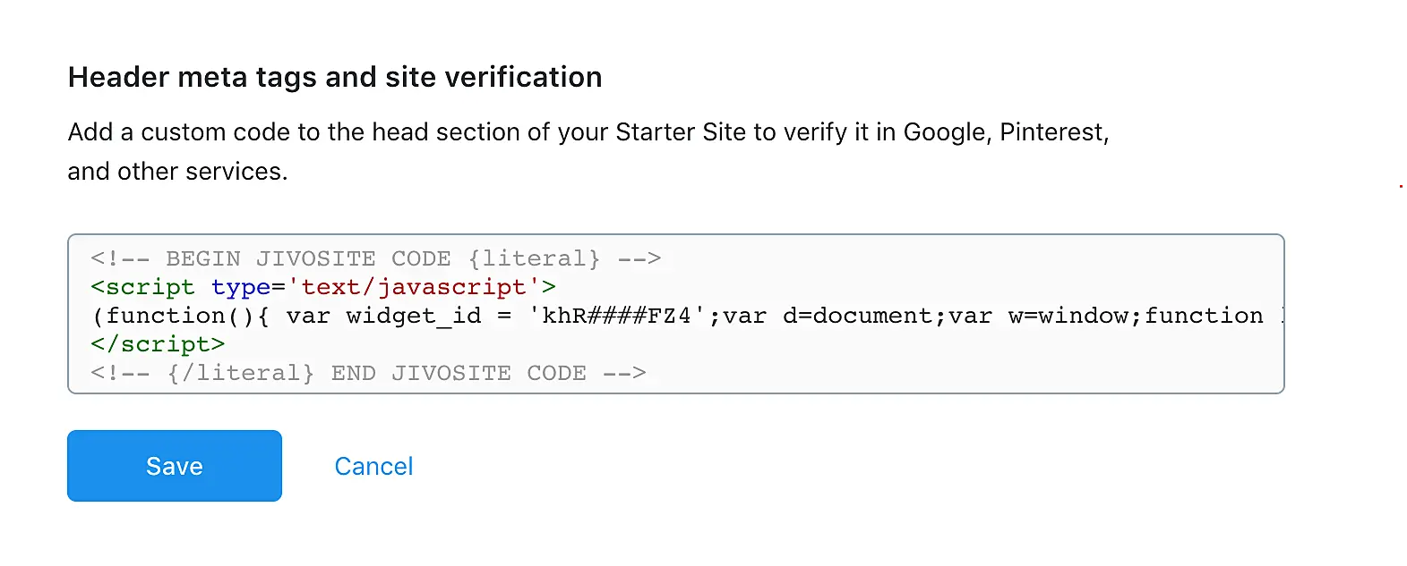 3. Header meta tags kısmına JivoChat kodunu yapıştırın.
