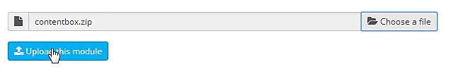 İndirilmiş ContentBox dosyasını seçin ve Upload'a tıklayarak yükleyin.