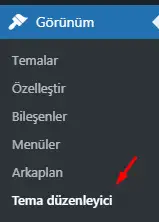 WordPress yönetici panelinde "Görünüm" sekmesine gidin ve "Editör"e tıklayın.