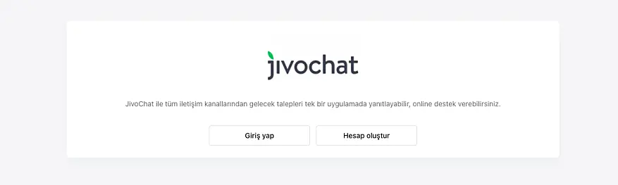 Uygulamayı kurduktan sonra Uygulamalarım kısmından JivoChat’e basın. Açılan ekranda eğer hesabınız varsa Giriş Yap’a, yoksa Hesap Oluştur butonuna basın.