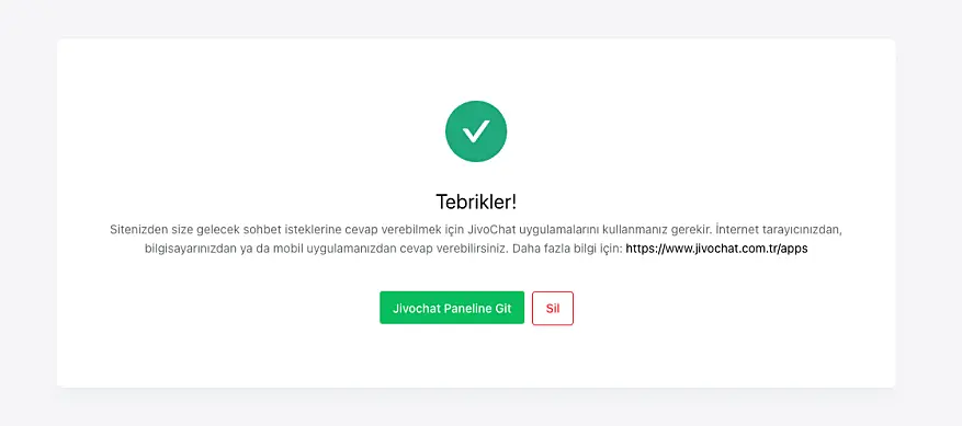 Artık e-ticaret sitenize JivoChat kuruldu ve müşterilerinize canlı destek hizmeti vermeye hazırsınız.