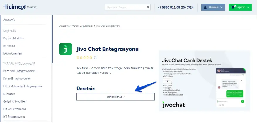 3. JivoChat entegrasyonuna erişin ve Ticimax hesabınıza ekleyin