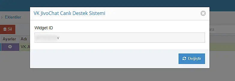 Bilgileri girip kaydettikten sonra JivoChat hesabınız içerisinde oluşturulan sohbet peneresine ait ID ekranda paylaşılacaktır.