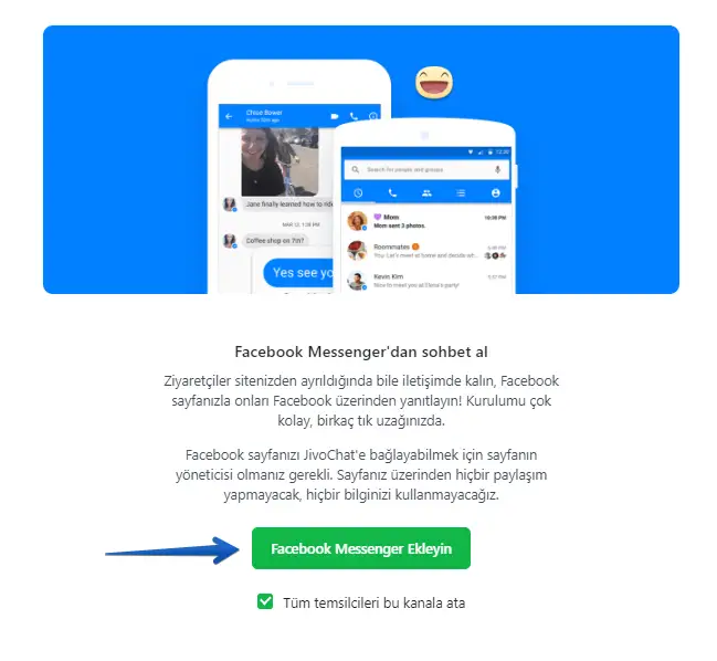 Bir Facebook sayfasından size gönderilecek mesajları, direkt olarak JivoChat temsilci uygulamanıza almanızı sağlar.