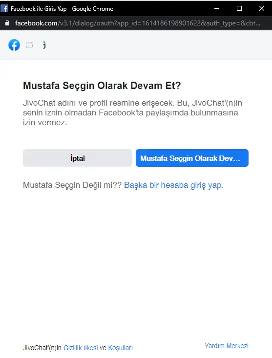 Sonra Facebook hesabınıza giriş yapın. Giriş yapacağınız hesabın, bağlamak istediğiniz Facebook sayfası yönetici hesabı olması gerekiyor.