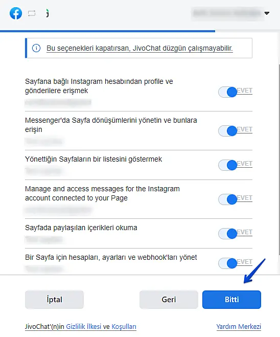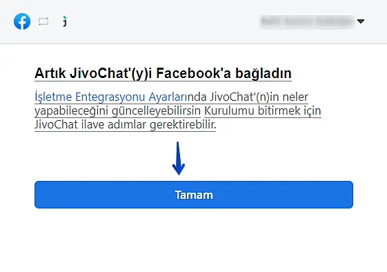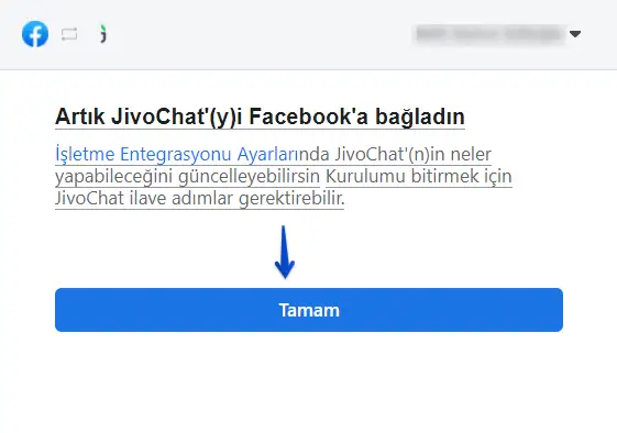 Son olarak, "Tamam"a tıklayın ve JivoChat uygulamasında bir başarı mesajı göreceksiniz.