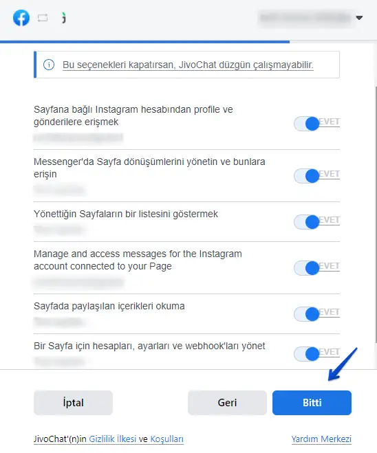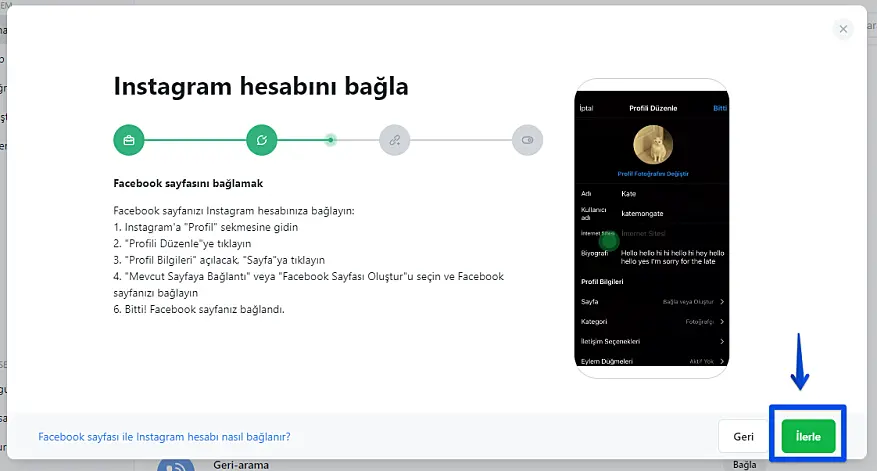 Ayrıca bu Instagram hesabına bağlı Facebook sayfasını da bağlamanız gerekir: