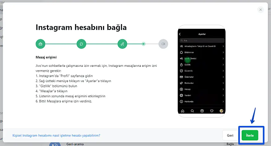 Lütfen açılır penceredeki tüm adımları izleyin. Başarılı bir bağlantı için dikkatlice okuyun ve sol alt köşede her adım için sağlanan rehber linklerini kontrol edin: