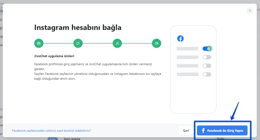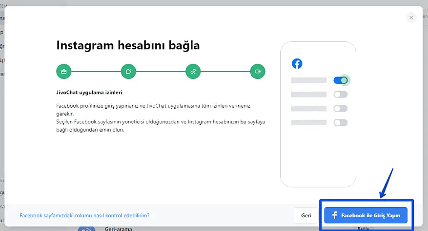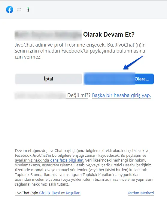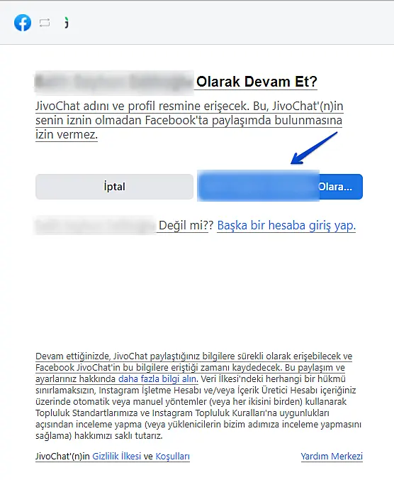 Şimdi, Facebook hesabınıza giriş yapmanız gerekecek. Giriş yaptığınız hesabınızın FB ve Instagram sayfalarınızı yönettiğiniz hesap olduğundan emin olun: