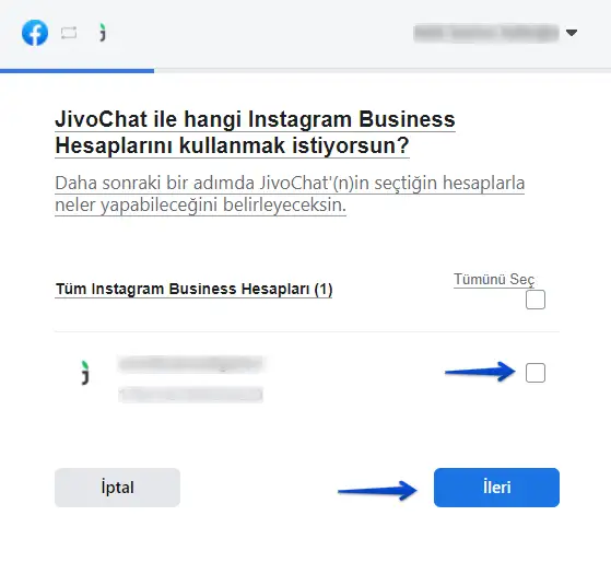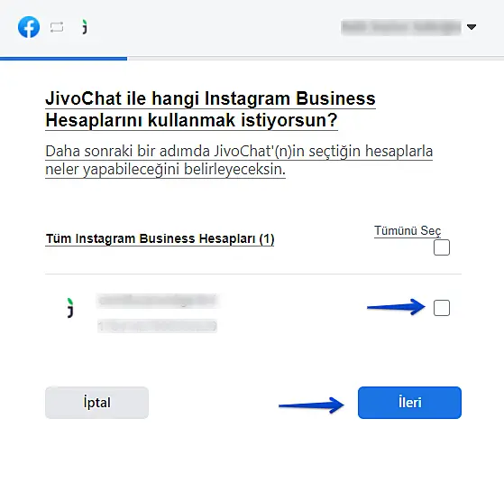 Bağlamak istediğiniz Instagram hesabını seçin:
