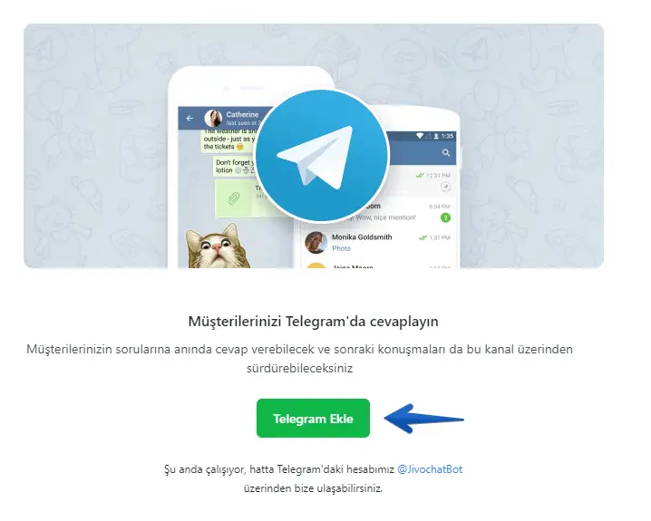 Bu entegrasyon ile müşterileriniz Telegram üzerinden oluşturacağınız kanala yazabilecek ve siz de bu mesajları JivoChat uygulamasına alabileceksiniz.