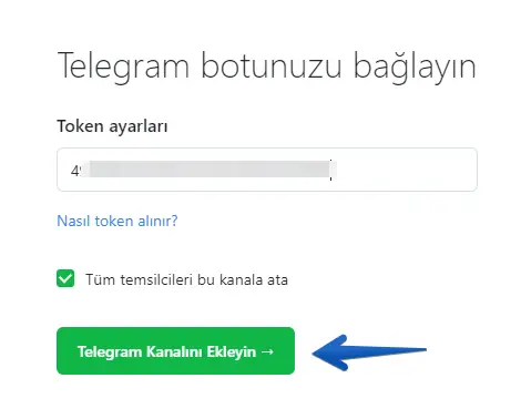 Biraz önce kopyaladığınız API anahtarını girin, önünde ya da içinde boşluk kalmamasına dikkat edin ve Telegramı ekle'ye tıklayın.