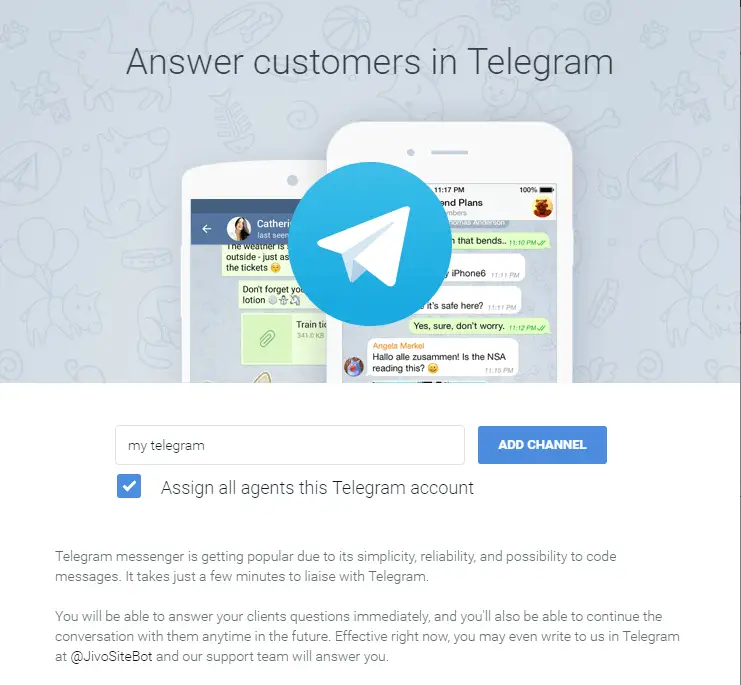 Bu kadar! Artık müşterileriniz Telegram uygulaması aracılığıyla yeni bot'unuza yazabilecek ve mesajlar direkt olarak JivoChat temsilcinizin uygulamasına ulaşacak!