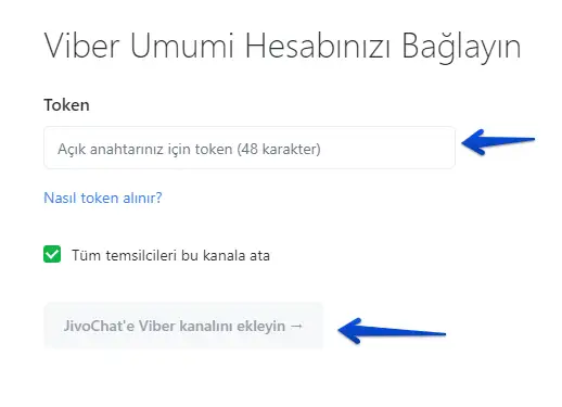 Şimdi JivoChat'ın yönetici panelini açın ve yeni bir Viber kanalı ekleyin