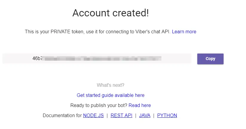 Yeni pencerede Viber'in API anahtarını yapıştırın.
