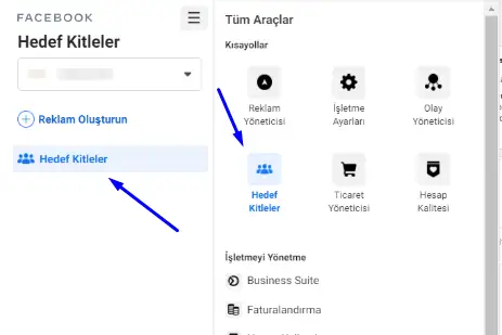 Reklam hesaplarında, kullanıcı kitlelerini ayarlama seçeneği vardır. Oluşturmak için: