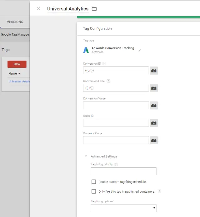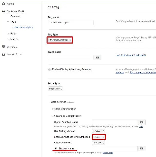 GTM'nin yeni sürümünde şu ayarları bulabilirsiniz: