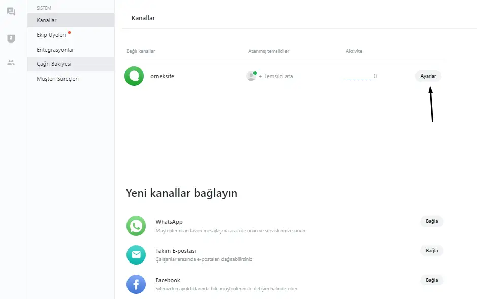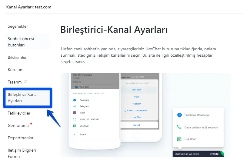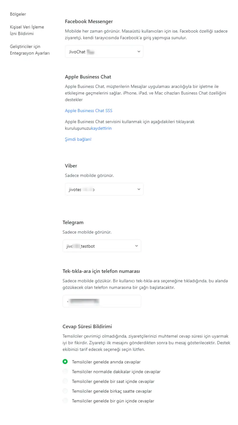 Yeni özelliği kullanmaya başlamak için öncelikle bu servislerle entegrasyonu ayarlamanız gerekir (Facebook, Telegram, Viber).