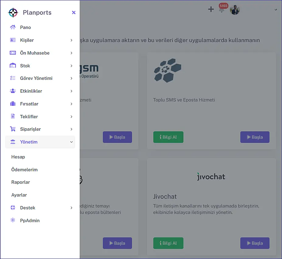 Aşağıda, Planprots CRM ve Jivochat entegrasyonunun nasıl aktif edilebileceği anlatılmıştır.