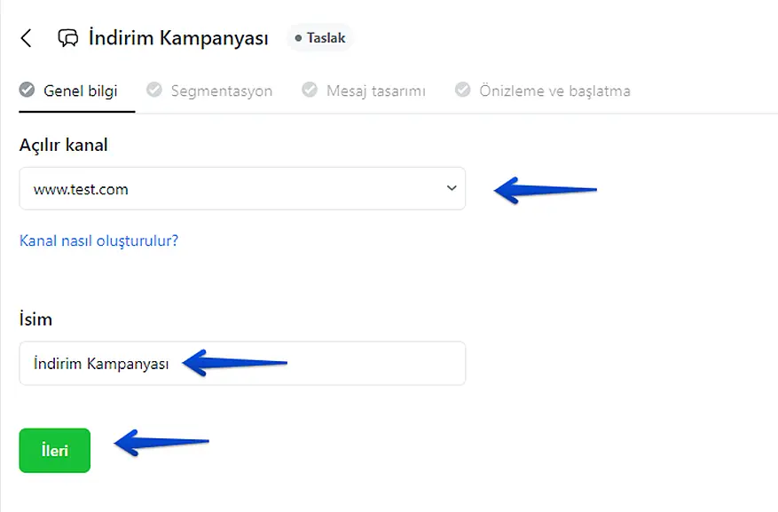 Bu menüde kampanyanızı oluşturmaya başlayacaksınız.