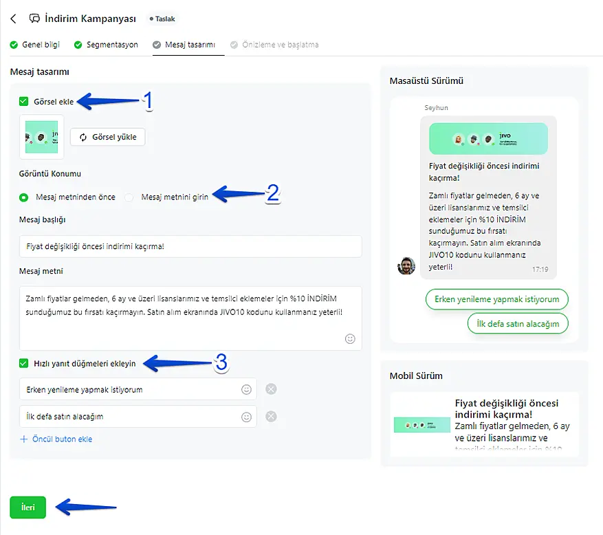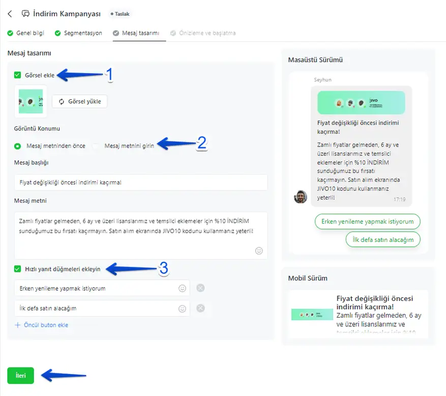 JivoChat'da Pazarlama Kampanyaları nasıl ayarlanır