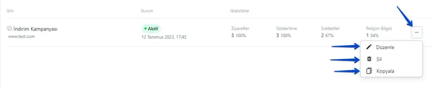 - Kampanyayı silebilir ve baştan başlayabilirsiniz