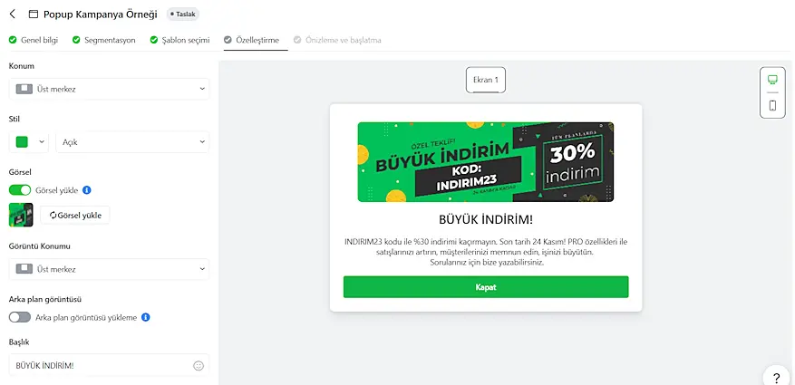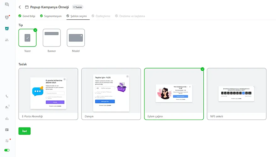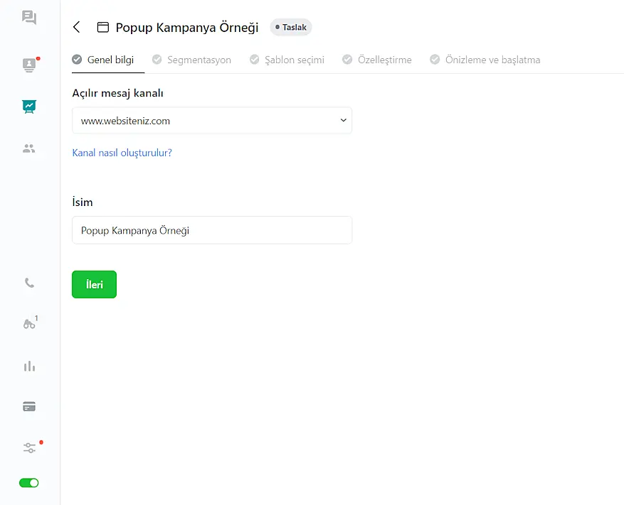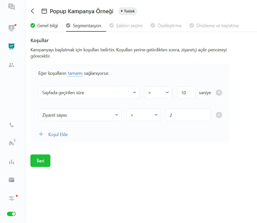 Popup penceresini göstermek istediğiniz bir kullanıcı segmenti oluşturun.