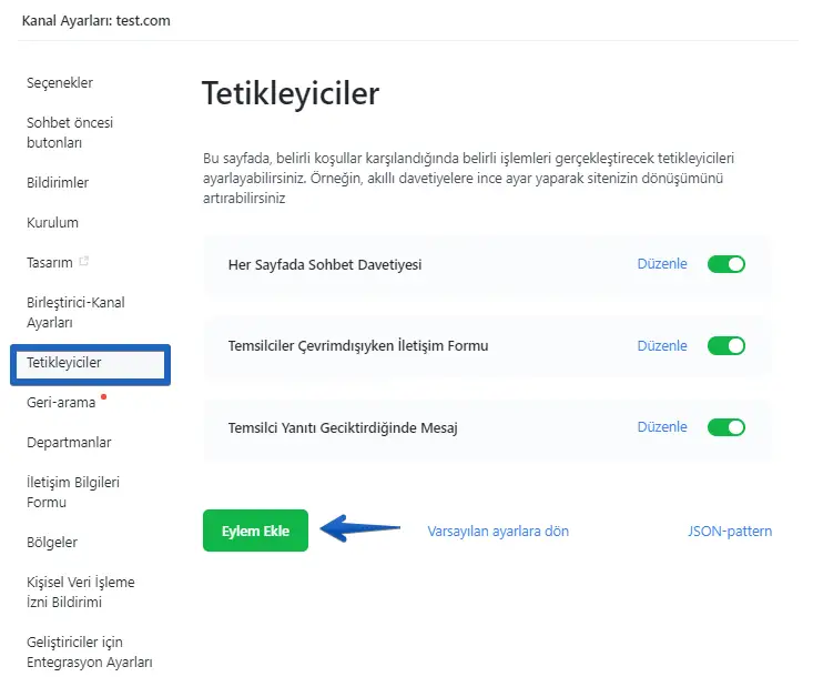 Sol menüde "Tetikleyiciler"i tıklayın.