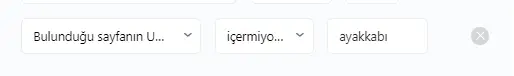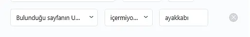Ve davet için en önemli sayfanın başlığında geçmesi gereken kelime/kelimeleri belirlemektir: örneğin bir "ayakkabılar". Koşul şöyle olmalı: "Bulunduğu sayfanın başlığı", "ayakkabılar" içeriyorsa, akıllı davetiyeyi göster.