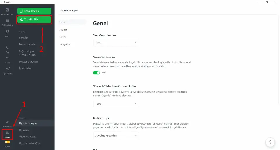 Bunun için öncelikle JivoChat uygulamasına giriş yapmalısınız.