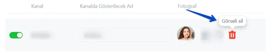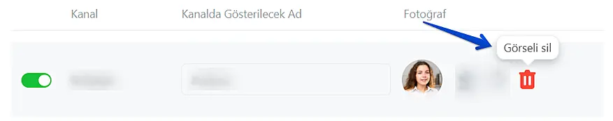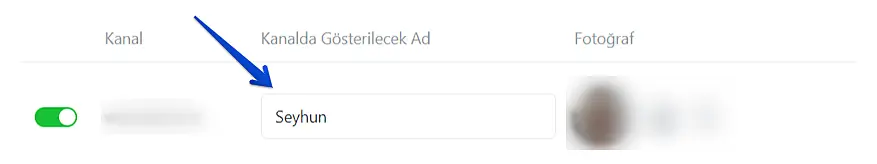 1 - "Kanalda gösterilecek ad" bölümünde temsilci adını değiştirebilirsiniz